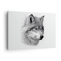 Obraz na płótnie - Realistyczny portret wilka w odcieniach szarości - 70x50cm - Alfa – bez wątpienia - Nowoczesna dekoracja ścienna do salonu i sypialni ARTTOR