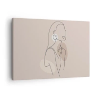 Obraz na płótnie - Minimalistyczna ilustracja kobiety z konturów na beżowym tle - 70x50cm - Ikona dziewczęcości - Nowoczesna dekoracja ścienna do salonu i sypialni ARTTOR