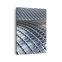 Obraz na płótnie - Abstrakcyjna futurystyczna struktura metalowa - 50x70cm - Metaliczna srebrna fala - Nowoczesna dekoracja ścienna do salonu, kuchni i sypialni ARTTOR