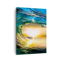 Obraz na płótnie - Zachód słońca widziany przez falę oceanu - 50x70cm - W szmaragdowo-złotym krysztale - Nowoczesna dekoracja ścienna do salonu, kuchni i sypialni ARTTOR