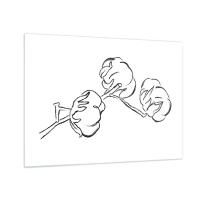 Obraz na szkle - Minimalistyczny szkic gałązki bawełny w czarnej linii - 70x50cm - Bawełniany puch - Nowoczesna dekoracja ścienna do salonu i sypialni ARTTOR