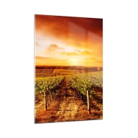 Obraz na szkle - Winorośla na polu o zachodzie słońca - 50x70cm - Delikatnie owocowe z nutą słońca - Nowoczesna dekoracja ścienna do salonu, kuchni i sypialni ARTTOR
