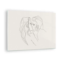 Obraz na szkle - Zmysłowy pocałunek pary w konturze linii - 70x50cm - Splątani uczuciem - Nowoczesna dekoracja ścienna do salonu i sypialni ARTTOR