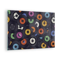 Obraz na szkle - Kolorowe płyty winylowe na czarnym tle - 70x50cm - Kolory klasyki - Nowoczesna dekoracja ścienna do salonu i sypialni ARTTOR