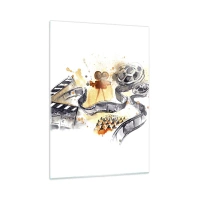Obraz na szkle - Filmowa taśma i kamera w artystycznej kompozycji - 50x70cm - W krainie snów - Nowoczesna dekoracja ścienna do salonu, kuchni i sypialni ARTTOR