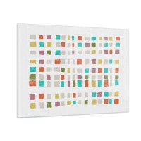 Obraz na szkle - Kolorowa mozaika kwadratów na białym tle w stylu abstrakcyjnym - 70x50cm - Nieznana gra - Nowoczesna dekoracja ścienna do salonu i sypialni ARTTOR