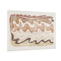 Obraz na szkle - Beżowe i brązowe fale w abstrakcyjnej kompozycji - 70x50cm - Dobra energia – dobre emocje - Nowoczesna dekoracja ścienna do salonu i sypialni ARTTOR
