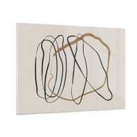 Obraz na szkle - Czarne pętle i linie tworzące abstrakcyjną kompozycję na białym tle - 70x50cm - Zapętlona abstrakcja - Nowoczesna dekoracja ścienna do salonu i sypialni ARTTOR