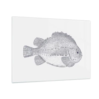 Obraz na szkle - Szczegółowa rycina ryby na białym tle w stylu przyrodniczym - 70x50cm - Do albumu przyrodnika - Nowoczesna dekoracja ścienna do salonu i sypialni ARTTOR