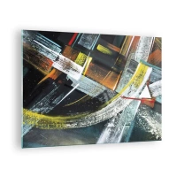 Obraz na szkle - Kolorowe abstrakcyjne formy i linie w dynamicznej kompozycji - 70x50cm - Można wprost lub naokoło - Nowoczesna dekoracja ścienna do salonu i sypialni ARTTOR