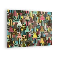 Obraz na szkle - Abstrakcyjna kompozycja z trójkątami w intensywnych kolorach - 70x50cm - W rytmie na trzy - Nowoczesna dekoracja ścienna do salonu i sypialni ARTTOR