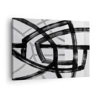 Obraz na płótnie - Czarno-białe abstrakcyjne linie przecinające się na jasnym tle - 70x50cm - Budowanie głębi - Nowoczesna dekoracja ścienna do salonu i sypialni ARTTOR