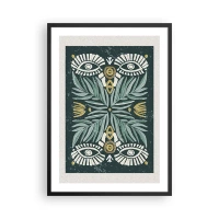 Plakat w czarnej ramie - Symetryczny wzór z liśćmi i oczami na ciemnym tle - 50x70cm - Jak ludowa wycinanka - Nowoczesna dekoracja ścienna do salonu i sypialni ARTTOR
