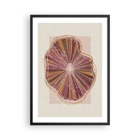 Plakat w czarnej ramie - Abstrakcyjny przekrój drzewa w odcieniach różu i brązu - 50x70cm - Abstrakcja promienista - Nowoczesna dekoracja ścienna do salonu i sypialni ARTTOR