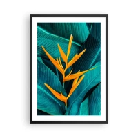 Plakat w czarnej ramie - Egzotyczny kwiat na tle zielonych liści tropikalnych - 50x70cm - Kwiat Edenu - Nowoczesna dekoracja ścienna do salonu i sypialni ARTTOR