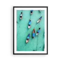 Plakat w czarnej ramie - Łodzie rybackie na turkusowej wodzie z lotu ptaka - 50x70cm - W radosnym oczekiwaniu - Nowoczesna dekoracja ścienna do salonu i sypialni ARTTOR