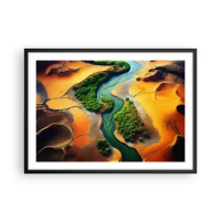 Plakat w czarnej ramie - Zielona rzeka w otoczeniu złotych piasków i roślinności - 70x50cm - Życiodajna rzeka - Nowoczesna dekoracja ścienna do salonu i sypialni ARTTOR