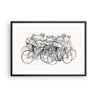 Plakat w czarnej ramie - Grupa kolarzy w ruchu w minimalistycznym stylu - 70x50cm - Wespół w zespół - Nowoczesna dekoracja ścienna do salonu i sypialni ARTTOR