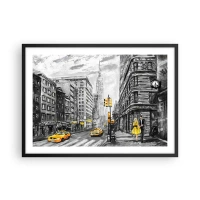 Plakat w czarnej ramie - Nowojorska ulica z żółtymi akcentami - 70x50cm - Nowojorska opowieść - Nowoczesna dekoracja ścienna do salonu i sypialni ARTTOR