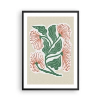 Plakat w czarnej ramie - Abstrakcyjny motyw kwiatów i liści na beżowym tle - 50x70cm - Ludowe i nowoczesne - Nowoczesna dekoracja ścienna do salonu i sypialni ARTTOR