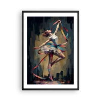 Plakat w czarnej ramie - Tancerka w dynamicznej pozie z kolorowymi wstęgami - 50x70cm - Taniec ze wstęgą - Nowoczesna dekoracja ścienna do salonu i sypialni ARTTOR