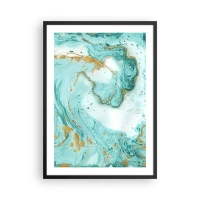 Plakat w czarnej ramie - Turkusowo-złota abstrakcja w marmurowym stylu - 50x70cm - Pod wielką falą z epoki Edo - Nowoczesna dekoracja ścienna do salonu i sypialni ARTTOR