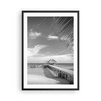 Plakat w czarnej ramie - Czarno-biały krajobraz z pomostem nad spokojnym morzem - 50x70cm - Wspomnienie czy marzenie? - Nowoczesna dekoracja ścienna do salonu i sypialni ARTTOR