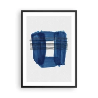Plakat w czarnej ramie - Abstrakcyjna kompozycja w odcieniach niebieskiego - 50x70cm - Niebiesko-czarna kompozycja - Nowoczesna dekoracja ścienna do salonu i sypialni ARTTOR
