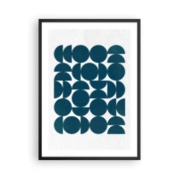 Plakat w czarnej ramie - Geometryczna kompozycja z niebieskimi kołami - 50x70cm - Koła i półkola - Nowoczesna dekoracja ścienna do salonu i sypialni ARTTOR