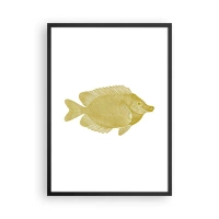 Plakat w czarnej ramie - Złota ryba w stylu vintage na białym tle - 50x70cm - Ryba i tyle - Nowoczesna dekoracja ścienna do salonu i sypialni ARTTOR
