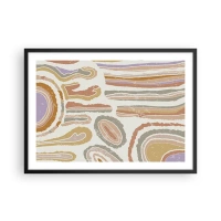 Plakat w czarnej ramie - Wzór linii w ciepłych odcieniach na jasnym tle - 70x50cm - Muzyczny zapis barw - Nowoczesna dekoracja ścienna do salonu i sypialni ARTTOR