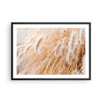 Plakat w czarnej ramie - Zbliżenie na złote, delikatne trawy w promieniach słońca - 70x50cm - Złoty szelest traw - Nowoczesna dekoracja ścienna do salonu i sypialni ARTTOR