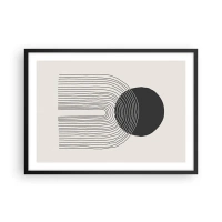 Plakat w czarnej ramie - Abstrakcyjny wzór z liniami i czarnym kołem na jasnym tle - 70x50cm - Drżenie i pewność - Nowoczesna dekoracja ścienna do salonu i sypialni ARTTOR