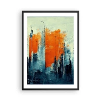 Plakat w czarnej ramie - Abstrakcyjna panorama miasta w odcieniach pomarańczu i granatu - 50x70cm - Pejzaż nowoczesny - Nowoczesna dekoracja ścienna do salonu i sypialni ARTTOR