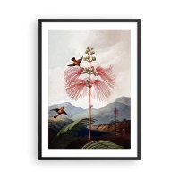 Plakat w czarnej ramie - Egzotyczny kwiat z kolibrami wśród gór - 50x70cm - W tropikalnym raju - Nowoczesna dekoracja ścienna do salonu i sypialni ARTTOR