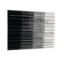 Obraz na szkle - Czarno-biała abstrakcja z poziomymi liniami tworzącymi gradient - 70x50cm - Fale i drgania - Nowoczesna dekoracja ścienna do salonu i sypialni ARTTOR
