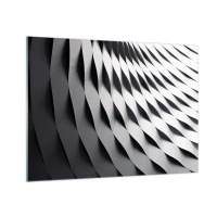 Obraz na szkle - Abstrakcyjna czarno-biała struktura przypominająca falujące formy - 70x50cm - Na powierzchni fal - Nowoczesna dekoracja ścienna do salonu i sypialni ARTTOR