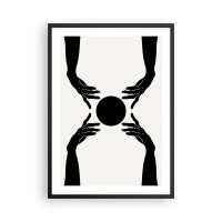 Plakat w czarnej ramie - Czarno-biała grafika dłoni z kulą - 50x70cm - Tajemny znak - Nowoczesna dekoracja ścienna do salonu i sypialni ARTTOR