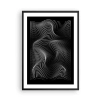 Plakat w czarnej ramie - Minimalistyczne fale w czerni i bieli - 50x70cm - Taniec światła w przestrzeni - Nowoczesna dekoracja ścienna do salonu i sypialni ARTTOR