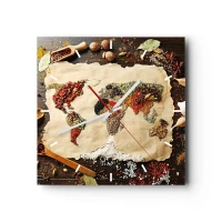 Zegar ścienny - Mapa świata wykonana z przypraw na drewnianym tle - 30x30cm - Wszystkie smaki świata - Nowoczesna dekoracja ścienna do salonu i sypialni ARTTOR