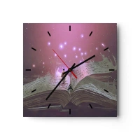 Zegar ścienny - Postać wchodząca na otwartą książkę w magicznym świetle - 30x30cm - Zaproszenie do innego świata - przeczytaj! - Nowoczesna dekoracja ścienna do salonu i sypialni ARTTOR