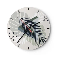 Zegar ścienny - Geometryczna kompozycja z tropikalnymi liśćmi - 30x30cm - Natura i geometria – dwa porządki? - Nowoczesna dekoracja ścienna do salonu, kuchni i sypialni ARTTOR
