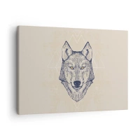 Obraz na płótnie - Geometryczny wilk na jasnym tle z minimalistycznymi wzorami - 70x50cm - Alfa o przenikliwym spojrzeniu - Nowoczesna dekoracja ścienna do salonu i sypialni ARTTOR