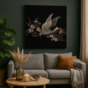 Obraz na płótnie - Egzotyczny, haftowany ptak - 30x30 cm