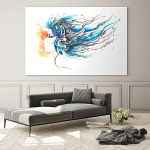 "Niech gra muzyka" to wyjątkowy obraz na szkle, który przedstawia kobietę z rozwianymi, niebieskimi włosami i słuchawkami, zanurzoną w muzycznej ekspresji. Dynamiczna kompozycja i wyraziste detale tworzą atmosferę pełną energii i kreatywności, która wprowadza do wnętrz unikalny charakter i artystyczny wyraz.
