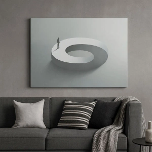 Obraz na ścianę - I bądź tu mądry - Człowiek na szarej, abstrakcyjnej konstrukcji