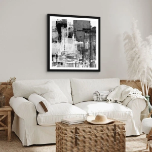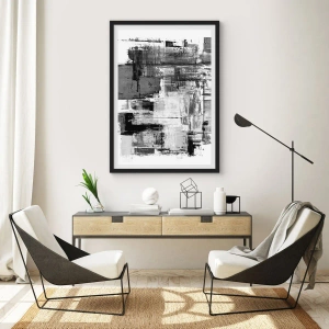 Plakat w czarnej ramie - Abstrakcyjna kompozycja w czerni, bieli i szarościach - 70x50cm - Szare jest piękne - Nowoczesna dekoracja ścienna do salonu i sypialni ARTTOR