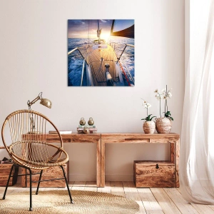 Obraz na ścianę - Biegnąca po falach - Jacht na morzu podczas zachodu słońca