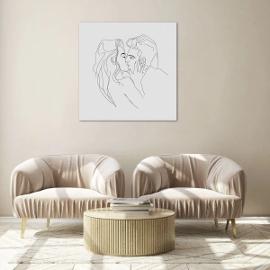 Ten niezwykle stylowy obraz to doskonały wybór dla miłośników nowoczesnej sztuki i minimalistycznych dekoracji. Linia jako forma artystyczna pozwala na swobodne interpretowanie emocji i relacji, które łączą dwoje ludzi. Obraz przyciąga uwagę swoją delikatnością, a zarazem mocą przekazu, co czyni go wyjątkowym elementem dekoracyjnym.