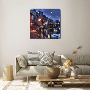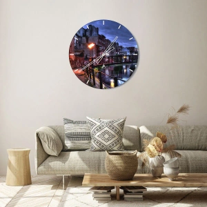 Zegar ścienny - Wieczorny widok na kamieniczki i mostek nad kanałem - 30x30cm - Takiej Bydgoszczy nie znałeś - Nowoczesna dekoracja ścienna do salonu i sypialni ARTTOR